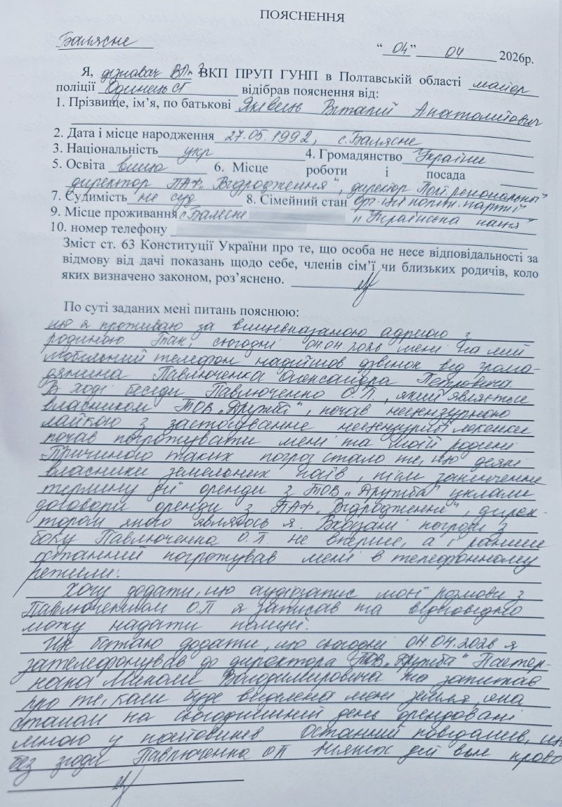 Конфлікт через паї: керівник ПАФ «Відродження» заявив про погрози з боку аграрія Павлюченка — останній тиск заперечує