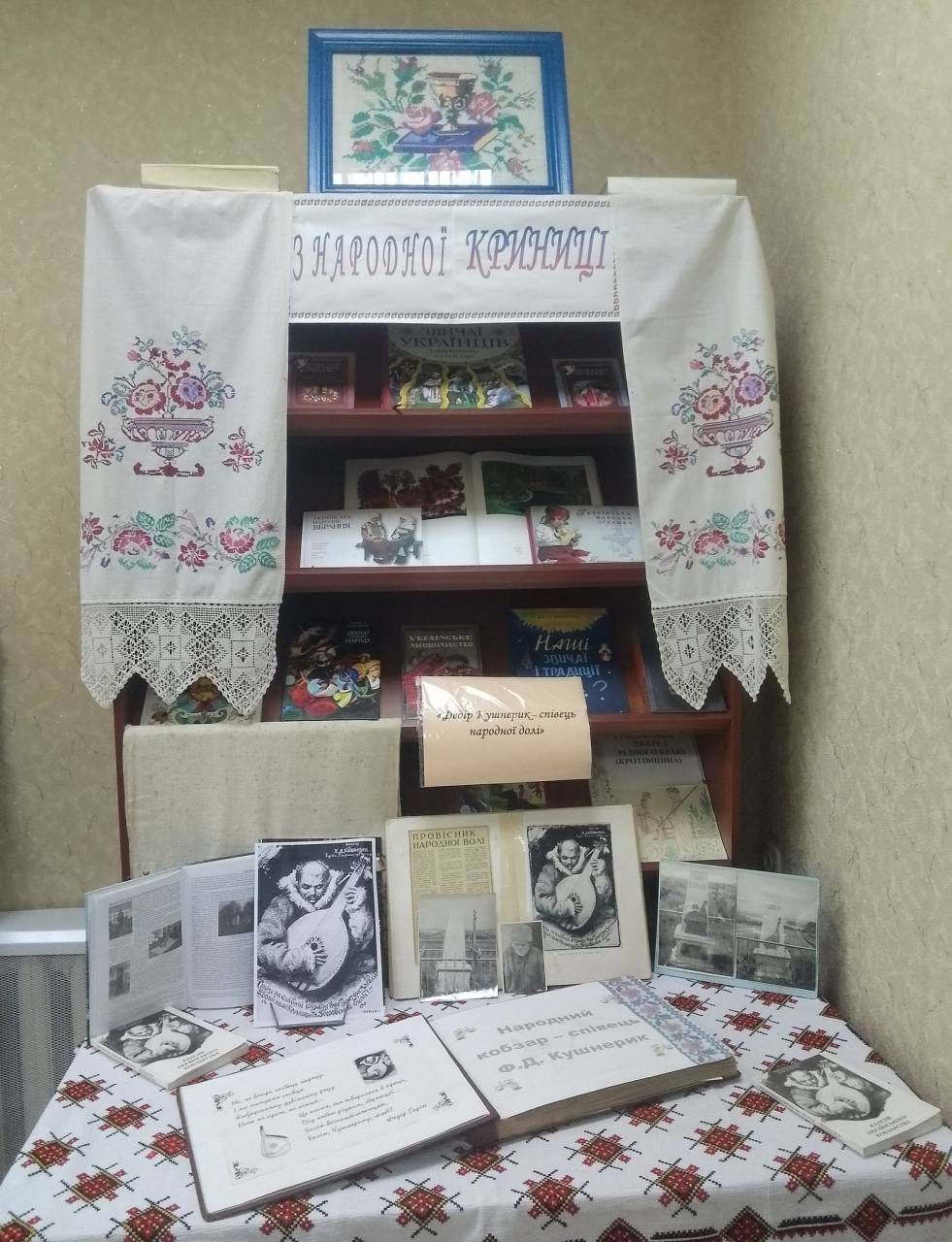 Також у читальній залі відділу обслуговування дітей Центральної публічної бібліотеки Великобачанської громади для широкого кола читачів було оформлено мистецьку композицію «Федір Кушнерик — співець народної долі».