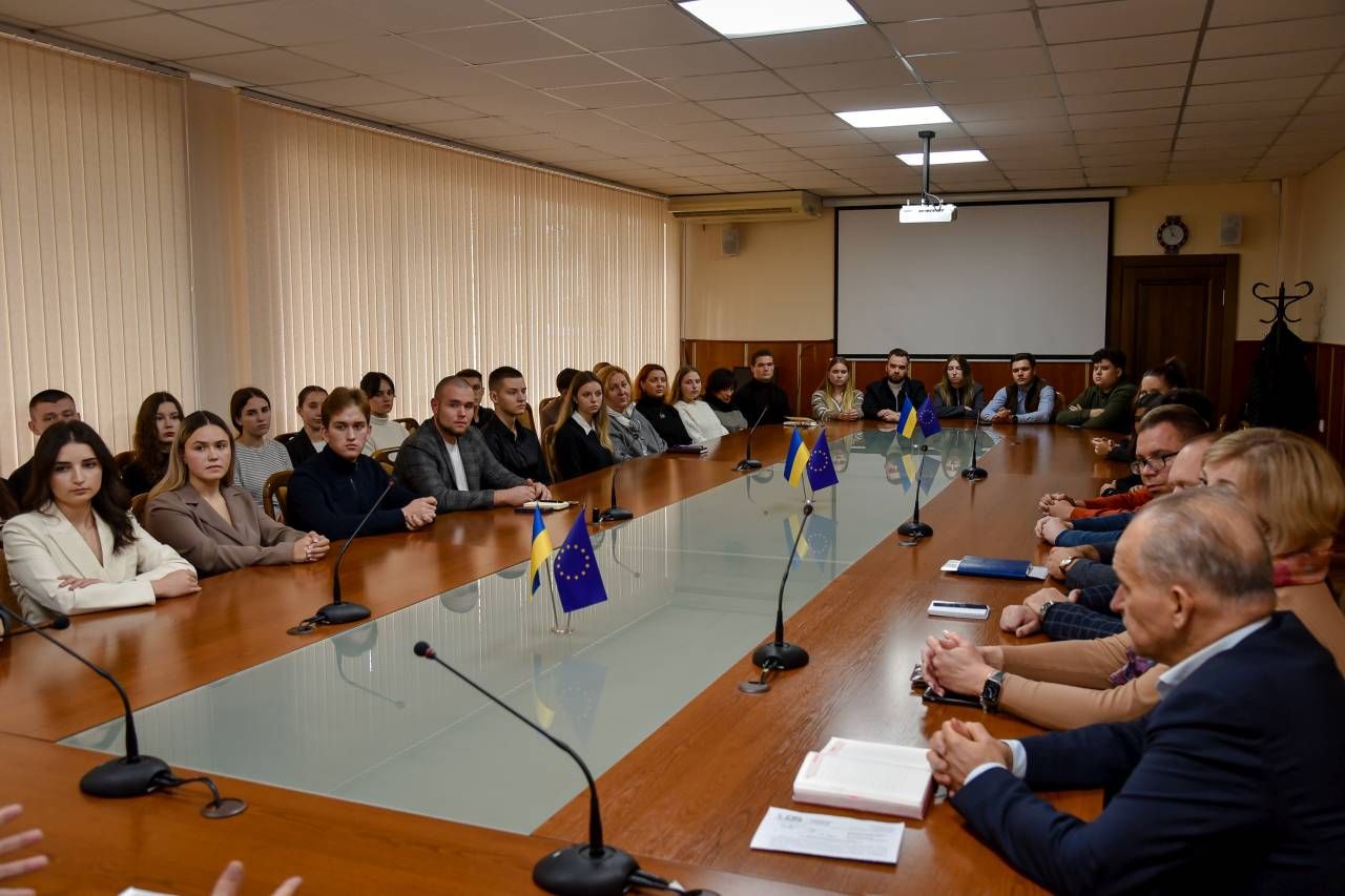 14 жовтня 2025 року відбулася традиційна зустріч ректора Полтавського державного медичного університету Вячеслава Ждана за участю першого проректора з наукової роботи ПДМУ Валентина Дворника та деканів факультетів зі студентським активом: членами Студентського парламенту, профспілки, волонтерських загонів, Студентської ради Фахового медико-фармацевтичного коледжу.