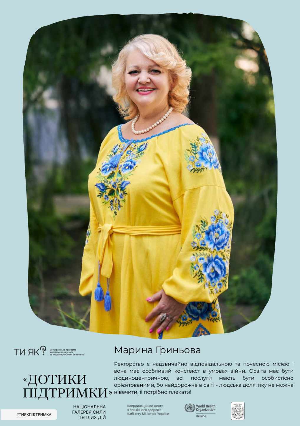 Відкрила фотоекспозицію ректорка університету, докторка педагогічних наук, професорка Марина Гриньова. Вона поділилася своїми принципами в роботі з людьми, наголосила, що надзвичайно важливо бачити цінність у кожному, допомагати всіма силами, хто того потребує, бути стійкими і триматися разом.