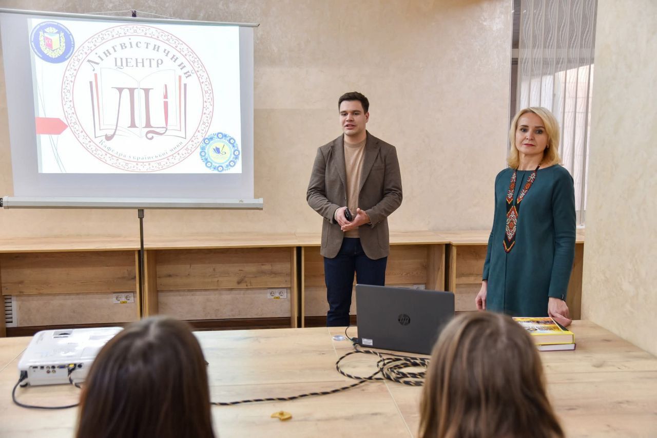 До присутніх звернулися перший проректор Олексій Гура й очільниця факультету української філології та журналістики Оксана Кирильчук. Олексій Анатолійович передав вітання від ректорки Марини Гриньової та наголосив на важливості єднання українства всього світу навколо рідної мови, що є надпотужним чинником у боротьбі України із зовнішніми загрозами. Оксана Борисівна зауважила, що факультетська спільнота повсякчас стоїть на сторожі Українського Слова, а цей щемливий захід відкриває Тиждень української писемности та мови, упродовж якого студенти поринуть у вир цікавих і пізнавальних подій.