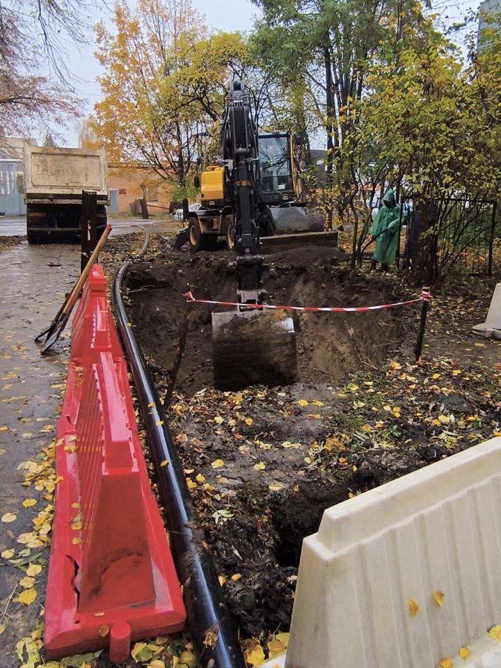 Виявлено два провали на квартальній каналізаційній мережі діаметром 400 мм: один — безпосередньо біля будинку №18, де встановлено тимчасовий трубопровід, другий — під прохідною Алмазного заводу, на перехресті з вулицею Дорошенка. До початку робіт стоки перекачувалися через тимчасову КНС.