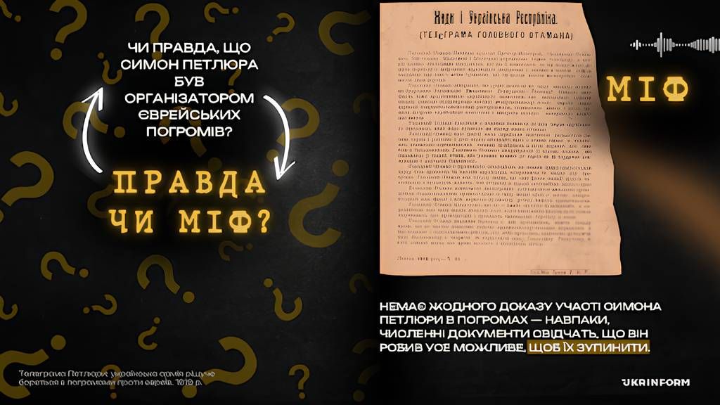 «Вбивство Петлюри: як вбивця став «жертвою» — таку назву має новий випуску з мультимедійного проєкту «Правда чи міф», яке створюють Український інститут національної пам’яті (УІНП), державне агентство «Укрінформ» та радіо «Байрактар». Відстежувати проєкт можна на сайтах цих установ, слухати в етері згаданого радіо й у соцмережах та на Spotify.