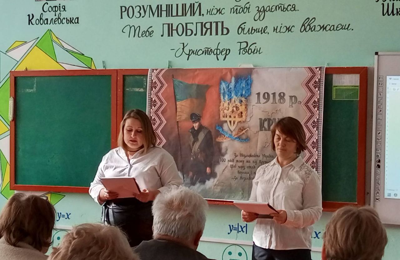 В.о. директора бібліотеки Тетяна Киба, історики Олександр Телешун та Зінаїда Лисенко розповіли про історичні передумови бою під Крутами, його перебіг і значення для української державності, учасників бою, уродженців Полтавщини. Вони наголосили на внеску вихідців з Полтавщини в боротьбу за волю України.