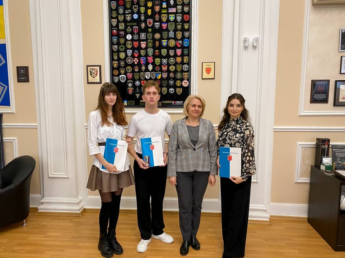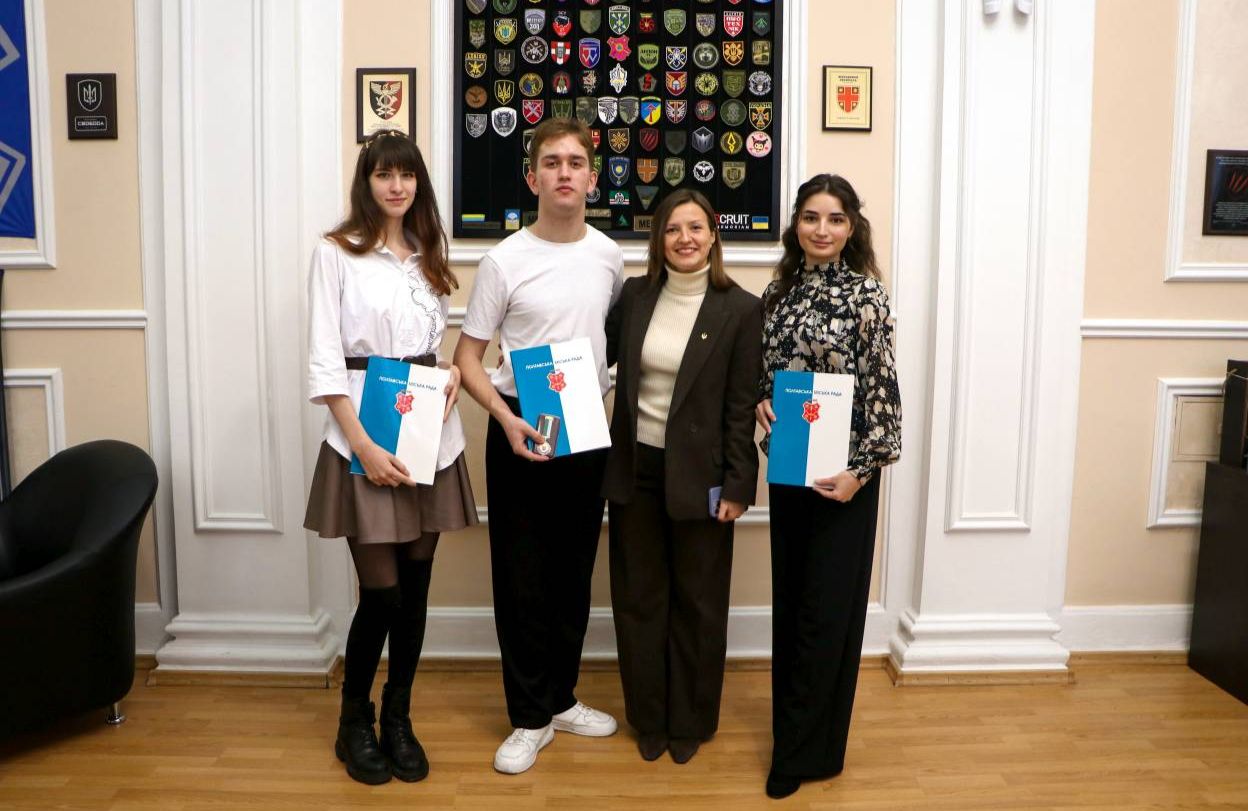 Секретар Полтавської міської ради Катерина Ямщикова вручила Почесні грамоти та Подяки міського голови трьом студентам ПДМУ.