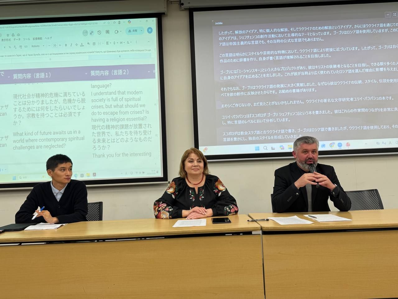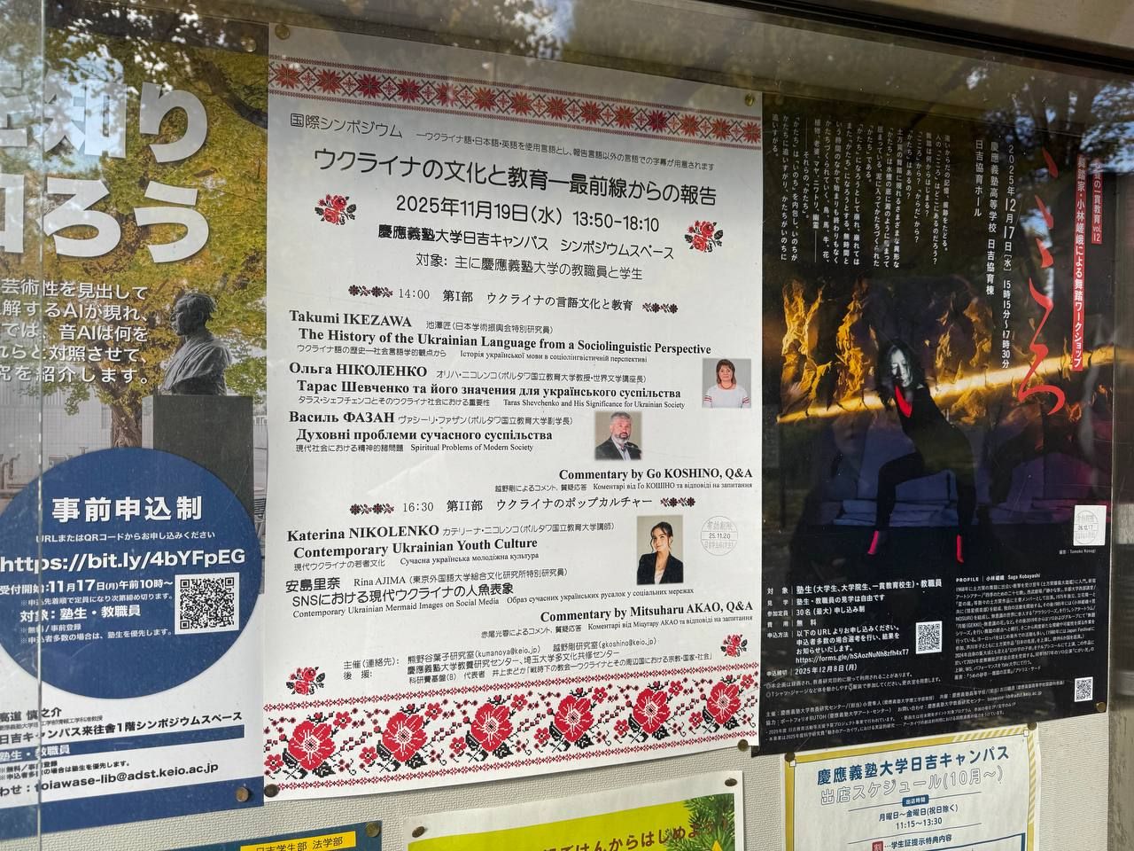 19 листопада 2025 року на базі Keio University (Токіо) відбувся симпозіум із питань української культури та її ролі в сучасному світі. Організатор заходу – професорка Yoko Kumanoya (Keio University). У вітальному слові вона привітала науковців з України та Японії й відзначила важливість розвитку українсько-японського співробітництва в галузі науки та освіти.