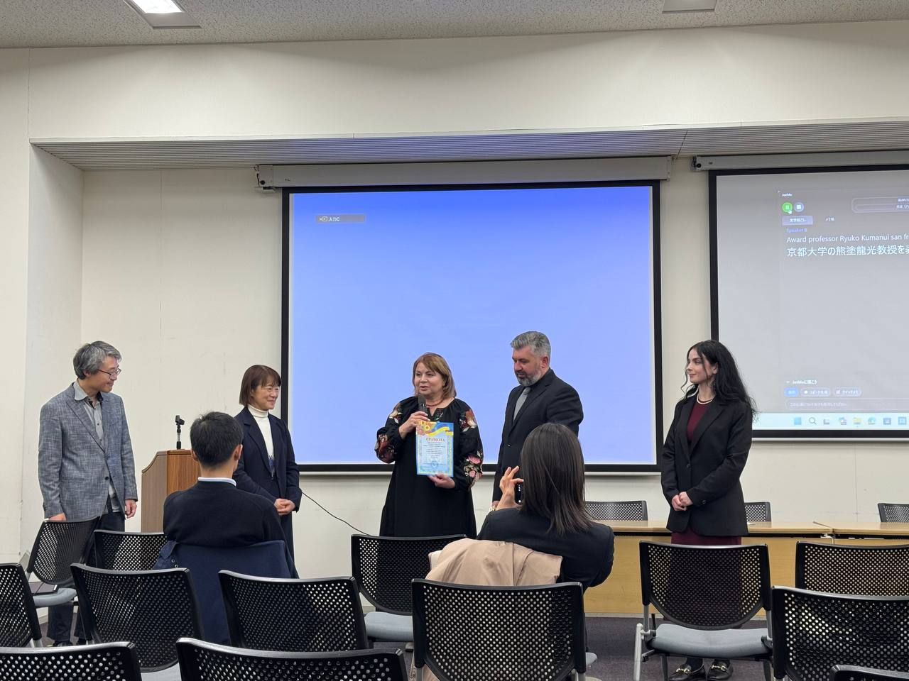 Полтавські науковці передали професору Yoko Kumanoya вітання та відзнаки від ректорки ПНПУ імені В. Г. Короленка за підтримку української науки та освіти й подарували підручники авторського колективу під керівництвом професора Ольги Ніколенко до бібліотеки Keio University.