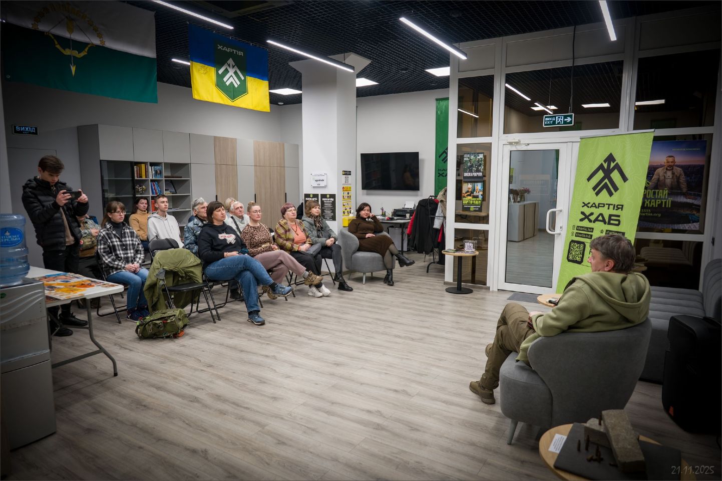 Полтавський Хартія-Хаб (просвітницький простір 2-го корпусу Національної гвардії України »Хартія») у партнерстві із Полтавським обласним краєзнавчим музеєм імені Василя Кричевського та представництвом Українського інституту національної пам’яті (УІНП) у Полтаві організували просвітницьку подію про історію українських Майданів. Про це повідомила координаторка простору Хартія-Хаб у Полтаві Вікторія Гончар.