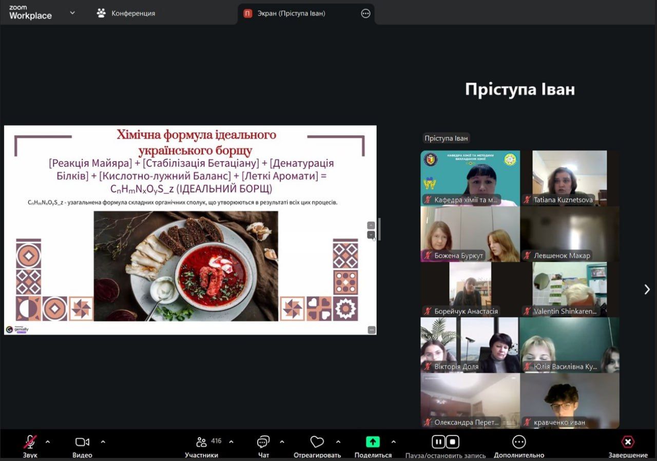 З метою створення умов для виявлення, підтримки та розвитку творчого потенціалу молоді, обдарованої в галузі хімії, розвитку здібностей і логічного мислення учнів і студентів, активізації творчої діяльності вчителів, популяризації оригінальних хімічних ідей і методів навчання хімії Полтавським національним педагогічним університетом імені В.Г. Короленка на базі кафедри хімії та методики викладання хімії за підтримки ДНУ «Інститут модернізації змісту освіти» 9 грудня 2025 року в режимі онлайн провели Всеукраїнський конкурс «Хімічний калейдоскоп». Ця подія об’єднала учнів, студентів, учителів, викладачів із різних куточків України, ставши міцною платформу для демонстрації знань, творчих підходів і практичних навичок у галузі хімії.