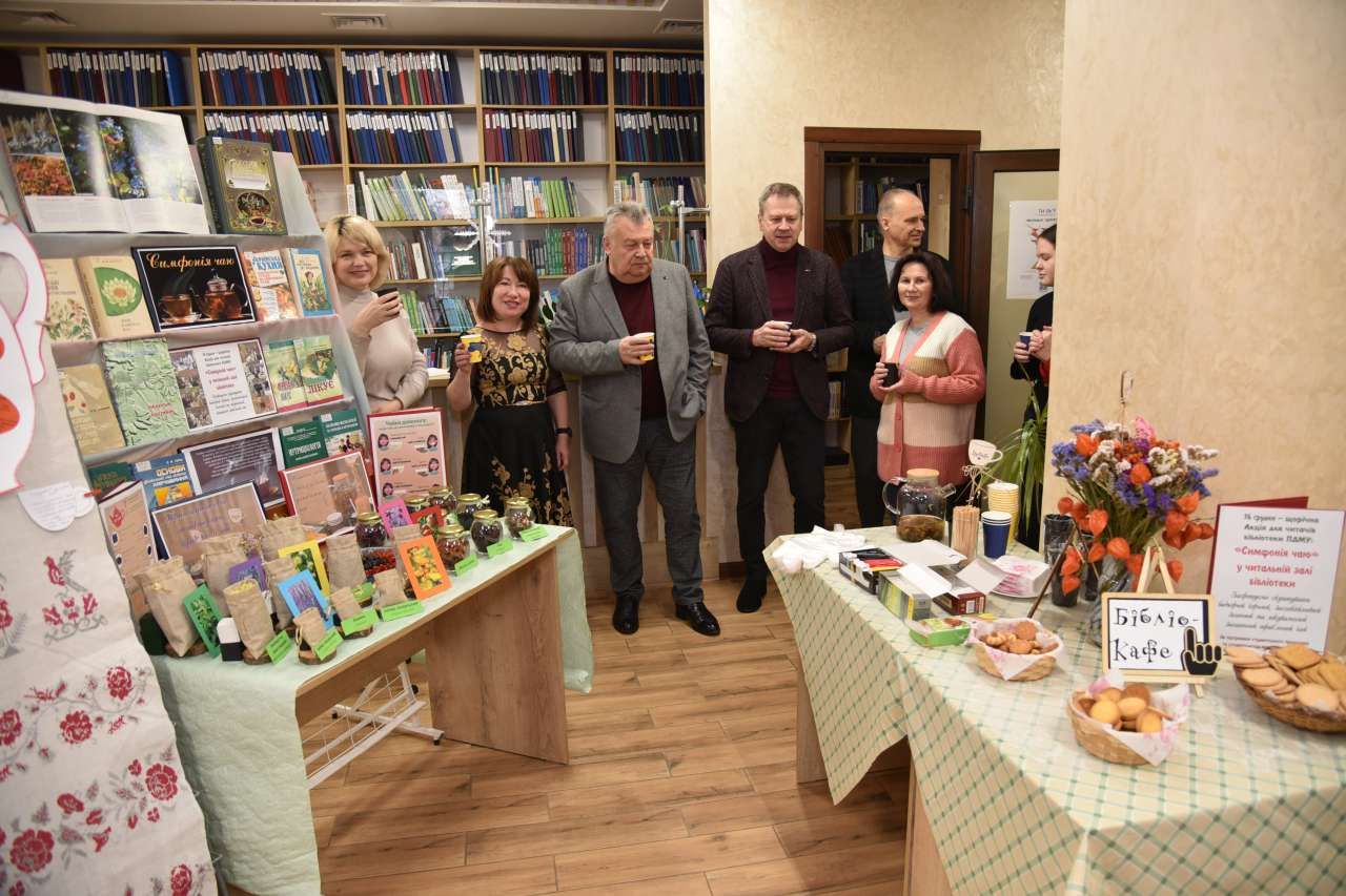 У теплій і затишній бібліотечній атмосфері, про надзвичайні властивості та різноманітність чайних напоїв, насолоджуючись запашним Чаєм, спілкувалися у дружньому колі наші поважні й дорогі гості: ректор університету, професор Вячеслав Ждан, перший проректор з науково-педагогічної роботи, професор Валентин Дворник, проректор з науково-педагогічної та виховної роботи, професор Валерій Похилько, представники студентського самоврядування, читачі книгозбірні. Кожен відвідувач мав можливість власноруч приготувати свій неповторний травʼяний Чай, дізнавшись про властивості обраних трав із видань, що були представлені на виставці «Симфонія чаю».