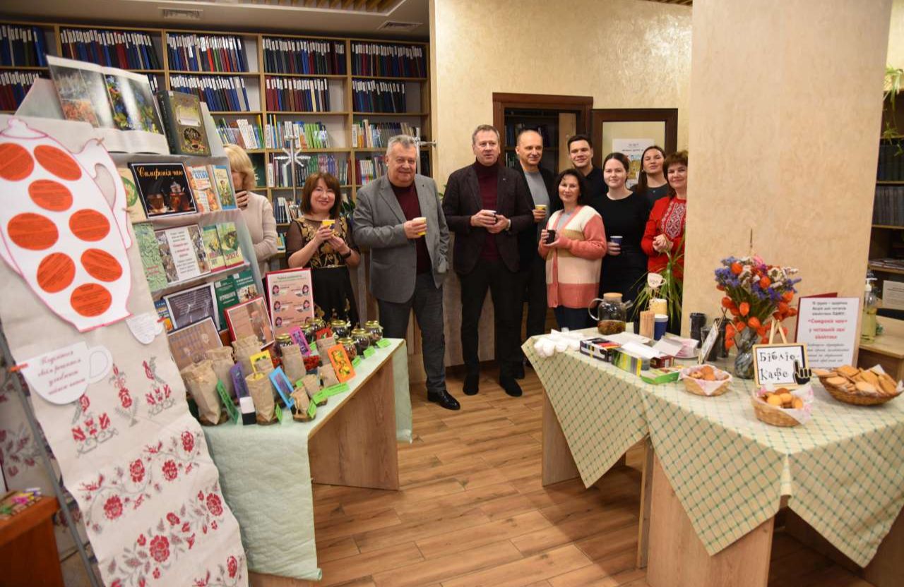 У теплій і затишній бібліотечній атмосфері, про надзвичайні властивості та різноманітність чайних напоїв, насолоджуючись запашним Чаєм, спілкувалися у дружньому колі наші поважні й дорогі гості: ректор університету, професор Вячеслав Ждан, перший проректор з науково-педагогічної роботи, професор Валентин Дворник, проректор з науково-педагогічної та виховної роботи, професор Валерій Похилько, представники студентського самоврядування, читачі книгозбірні. Кожен відвідувач мав можливість власноруч приготувати свій неповторний травʼяний Чай, дізнавшись про властивості обраних трав із видань, що були представлені на виставці «Симфонія чаю».