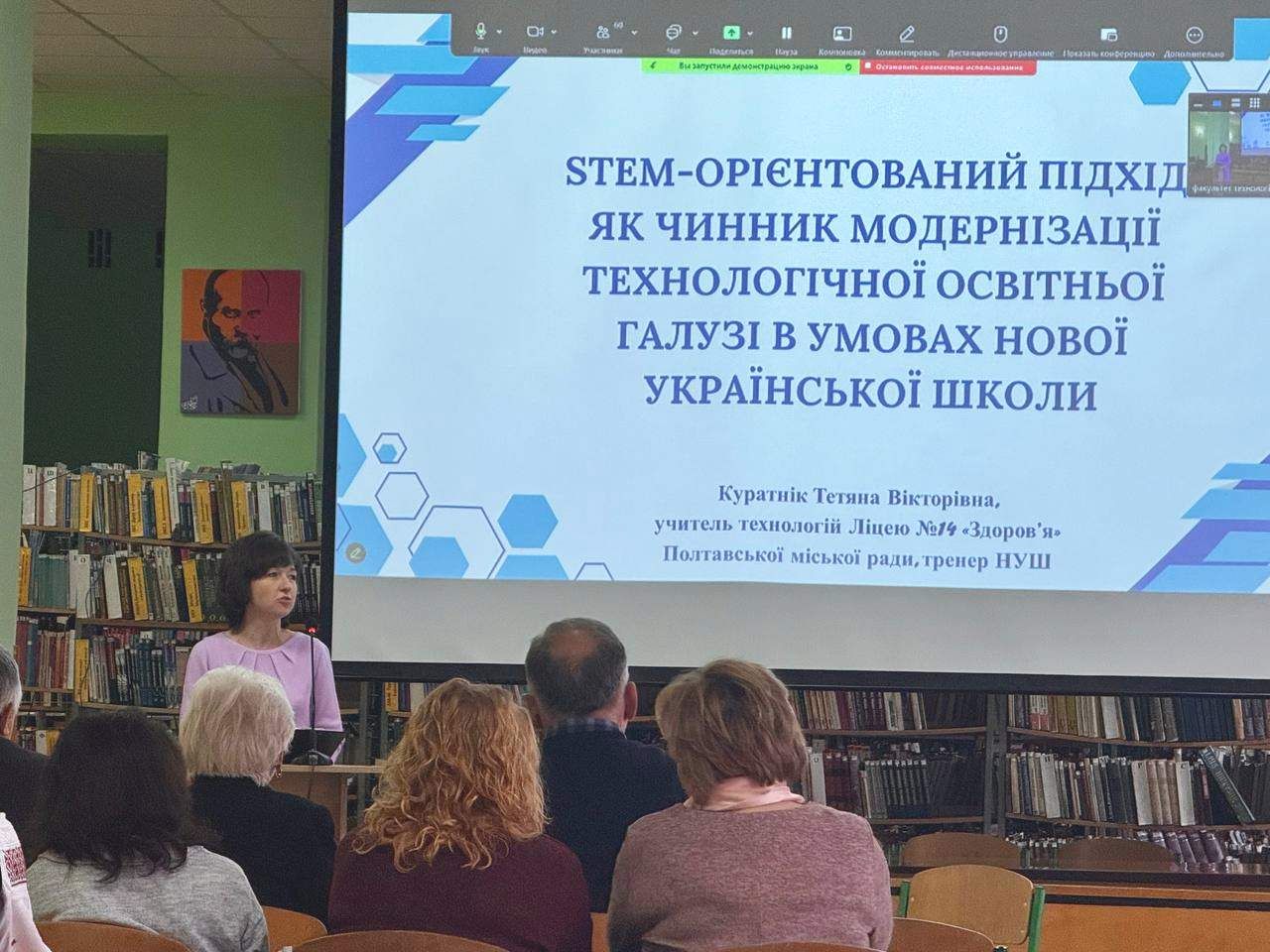 Здобувачка третього (освітньо-наукового) рівня вищої освіти ПНПУ імені В. Г. Короленка Оксана Терентьєва зауважила роль STEM-орієнтованого підходу як чинника модернізації технологічної освітньої галузі.