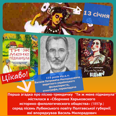 Яскраво змалював щедрування на Полтавщині у другій половині XIX ст. Центральна фігура - Маланка – переодягнений в костюм дівчини чи жінки парубок. «Маланку» супроводжували інші відомі персонажі новорічних ряжень. «Дід», що залицявся до «Маланки», «коза», «лікар», «козак». «Маланка» відбувалася із музичним супроводом. Василь Милорадович описує дійство так: «Зайшовши в хату, хлопці спочатку щедрують, потім танцюють дуже запопадливо з Меланкою. Раптом у танець втручається дід, розганяє їх палицею, б'є також і Меланку і наказує музикам: грайте моїй Меланці! Сам танцює з нею. Угамувавшись, виймає калиту і просить «Пане-господарю, дайте копієчку Меланці на сережки!». Діду дають від 5 до 50 коп».