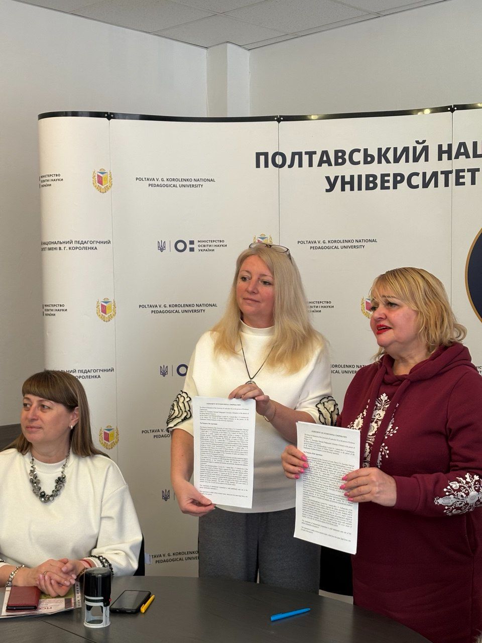 Під час завершального етапу підписання договору ректорка Полтавського педагогічного університету Марина Гриньова відзначила багаторічну плідну співпрацю ПНПУ імені В. Г. Короленка і Полтавського ліцею №1, наголосивши на пріоритетності забезпечення якості освіти для обох навчальних закладів.