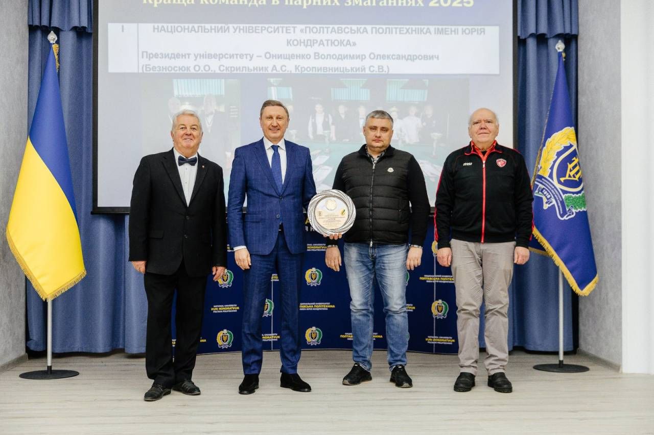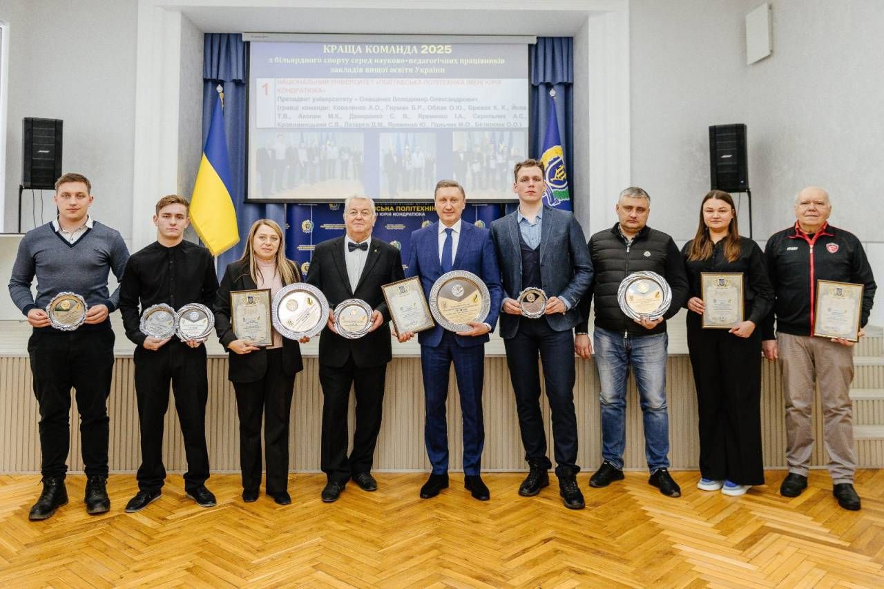 Команда Національного університету «Полтавська політехніка імені Юрія Кондратюка» виборола першість за результатами 2025 року у змаганнях зі спортивного більярду серед науково-педагогічних працівників України. 28 січня відбулося урочисте нагородження переможців почесними відзнаками та подяками.
