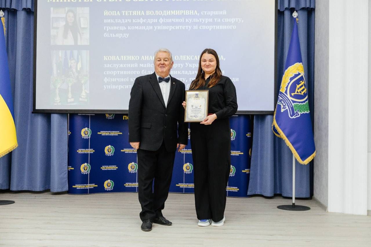 Цьогоріч почесні відзнакі та подяки отримали ті, хто своїм талантом, наполегливістю та відданістю справі виформовує спортивну славу Полтавської політехніки: Володимир ОНИЩЕНКО — Президент Національного університету «Полтавська політехніка імені Юрія Кондратюка»; Ліна РИБАЛКО — декан факультету фізичної культури та спорту; Тетяна ЙОПА — старша викладачка фізичної культури та спорту; Анастасія КОВАЛЕНКО — заслужений майстер спорту України, тренерка викладачка фізичної культури та спорту.