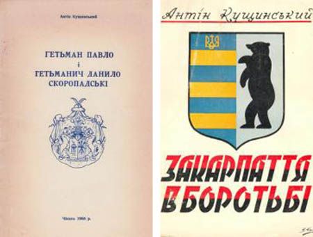 Антін Кущинський є автором книг з історії козацтва та гетьманського руху, зокрема «Гетьман Павло і Гетьманич Данило Скоропадські» та «Вояцькі заслуги і лицарські чесноти Гетьмана всієї України Павла Скоропадського». У редагованому ним часописі «Українське Козацтво» (за 1983 рік) писав: «…кожний народ має свої звичаї, що виробилися протягом багатьох століть і стали скарбом його культури. Звичаї, як і рідна мова, є тим найміцнішим елементом, що об’єднує окремих людей в один народ. Передача тих звичаїв з роду в рід, з покоління в покоління творять національну традицію, освячену віками, свою самобутню духову культуру. Тарас Шевченко, звертаючись до України, як до матері, що вічно страждає, питається: «Чи ти рано до схід-сонця Богу не молилась? Чи ти діточок непевних звичаю не вчила?». Отже наш національний геній вважає, що не вчити дітей своїх звичаїв — це такий же великий гріх, як гріх не молитися Богу… А гетьман Іван Мазепа сказав: «Своє забудеш — твій корінь всохне»! Велика своїми просторами Україна, населена людністю, що перебувала в різних історичних, природних, економічних і політичних обставинах. Але прадідівські звичаї та виплекана століттями рідна мова, з багатством її різних говірок, були тими своєрідними цінностями, що своєю силою перемагали всі шкідливі впливи».