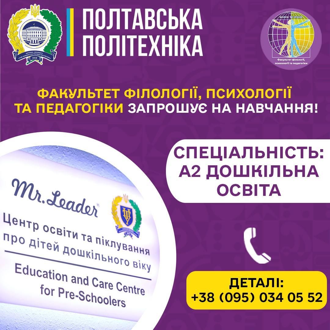 «Дитинство – це не підготовка до майбутнього життя, а саме життя, яскраве, самобутнє, неповторне», – стверджував Василь Сухомлинський. У Полтавській політехніці цей принцип втілено у кожній дисципліні – від лідерства та адміністрування до психологічного супроводу дитини. Тут готують фахівців, здатних створювати комфортне, безпечне й розвивальне середовище навіть у найскладніші часи.