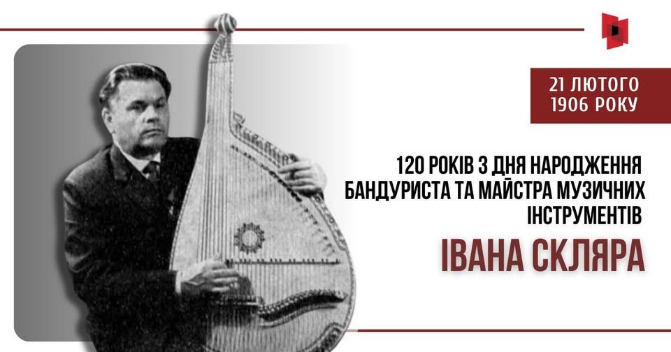 Іван Михайлович Скляр — одна з тих постатей, що тримали й формували українську музичну традицію не лише голосом і сценою, а й руками майстра. Він увійшов в історію як бандурист і як конструктор народних інструментів: людина, яка однаково добре розуміла і музику, і дерево, і механіку звуку. Народився майбутній талант 120 років тому, у Миргороді на Полтавщині 21 лютого 1906 року.