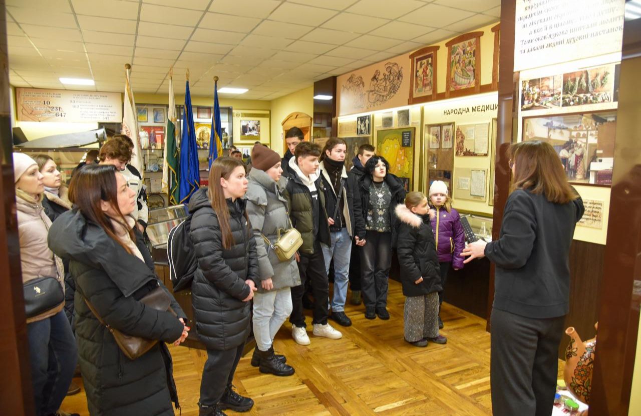 Першою локацією став народний музей історії університету. Завідувачка Таміла Дашевська провела екскурсію та розповіла про розвиток медичної освіти в регіоні, роль лікарів у різні історичні періоди та внесок відомих медиків у становлення галузі. Експозиції музею висвітлюють розвиток медицини від давніх часів до сучасності, зокрема роль медиків у період російсько-української війни.