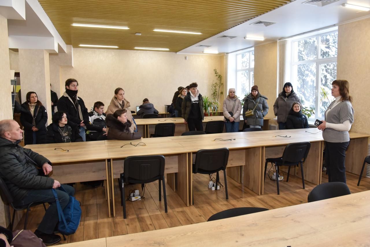 Наступною зупинкою стала університетська бібліотека. Провідний бібліотекар відділу обслуговування та зберігання фондів Тетяна Резутіна ознайомила гостей із сучасними інформаційними ресурсами, структурою книгозбірні, правилами користування фондами та музеєм раритетної книги.
