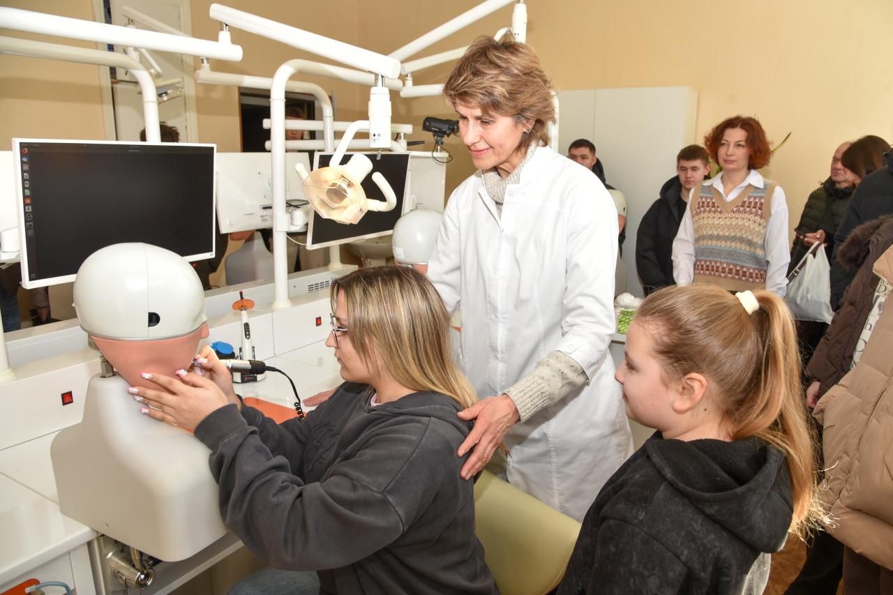 Пізнавальною була зустріч на кафедрі дитячої терапевтичної стоматології. Асистент кафедри Наталія Моргун представила особливості навчання та продемонструвала практичні навички на тренажерах, де школярі мали можливість виконати базові маніпуляції.