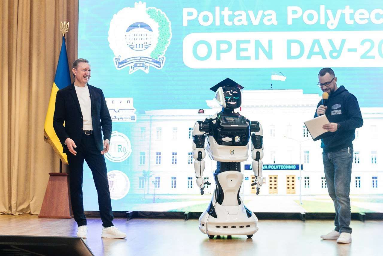 Родзинкою зустрічі та яскравим підтвердженням слів президента університету стала поява робота Політеха, який спілкувався з абітурієнтами, відповідав на запитання, запрошував вступати до Полтавської політехніки. Символічна учать у заході робота Політеха продемонструвала інноваційний дух університету, його орієнтацію на сучасні цифрові технології, впровадження діджиталізації та штучного інтелекту в університетському середовищі. І навіть робот запрошував абітурієнтів вступати на навчання до найкращого університету України — Полтавської політехніки! І, як жартували учасники OPEN DAY, якщо навіть штучний інтелект дає таку пораду — це правильний вибір!