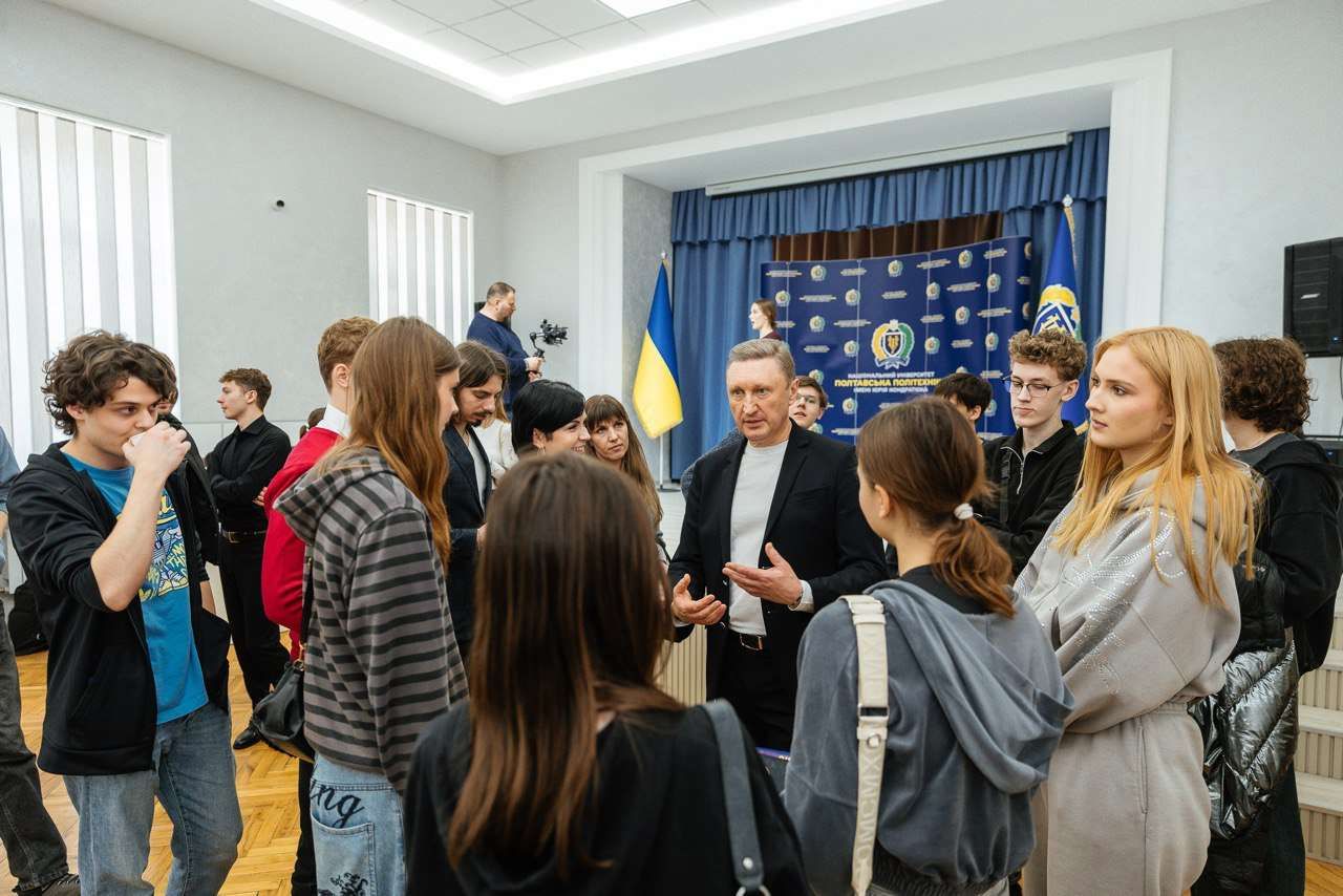 Продовжуючи спілкування з абітурієнтами, президент університету зробив акцент на стрімкому розвитку Полтавської політехніки в тренді осучаснення навчально-лабораторної бази у партнерстві з провідними вітчизняними та закордонними бізнес-компаніями. Важливим напрямом залишається модернізація та цифровізація освітнього процесу, а також розвиток міжнародної академічної мобільності у співпраці з топовими європейськими закладами вищої освіти. Полтавська політехніка зараз — це інноваційний центр Полтавщини, багатопрофільний класичний університет, який містить у своїй структурі 8 структурних підрозділів та понад 7,5 тисяч студентів, які навчаються за 100 сучасними освітніми програмами.