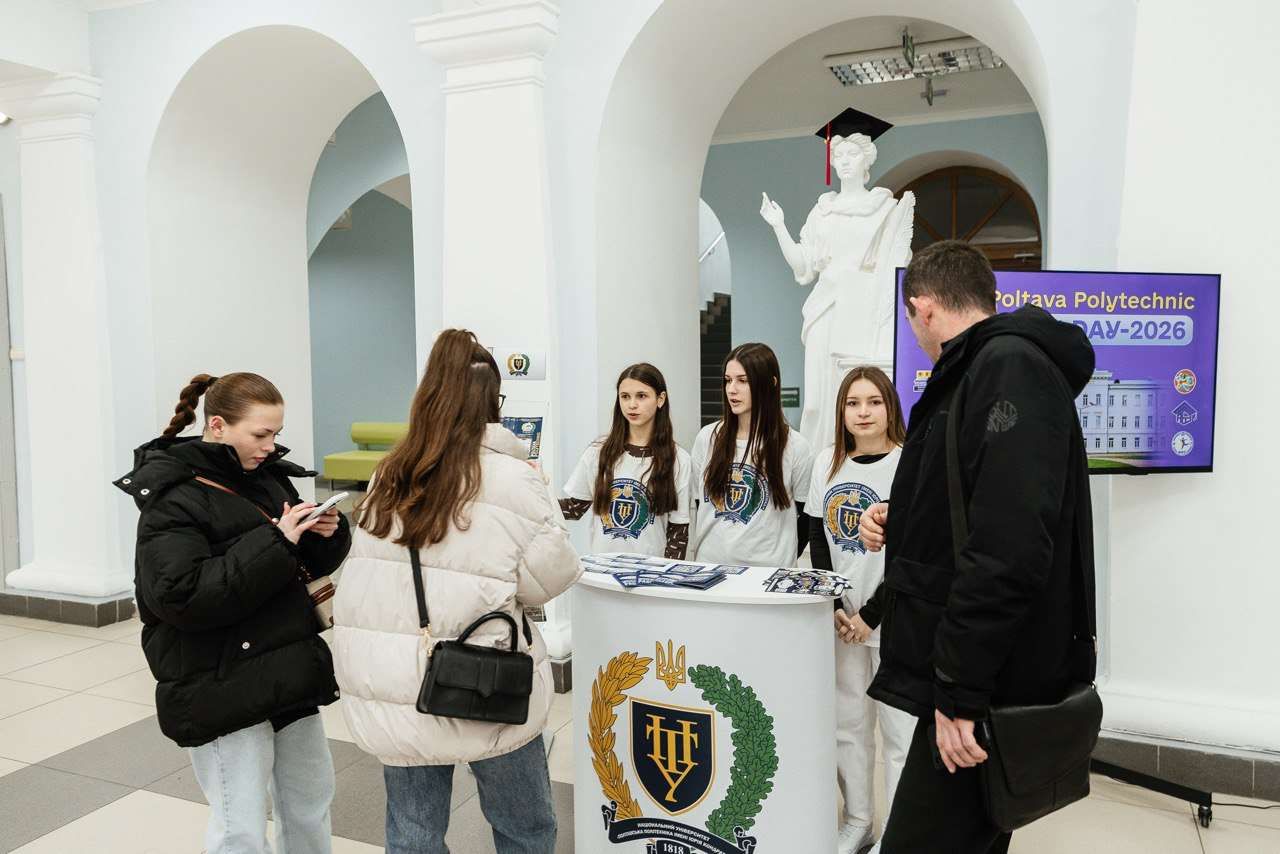 Кожен майбутній випускник школи, який зареєструвався на POLTAVA POLYTECHNIC OPEN DAY, отримав символічний «Паспорт абітурієнта» — справжній путівник у світ студентського життя, в якому містилася програма заходу, інформація щодо навчально-наукових інститутів і факультетів класичного університету, а також «Календар вступника» з ключовими датами вступної кампанії — 2026.