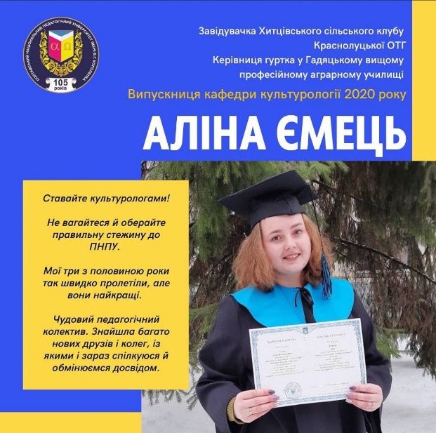 Обираючи культурологію та музеєзнавство у Полтавському педагогічному університеті, ви отримуєте не просто спеціальність, а можливість долучитися до формування культурного середовища майбутнього, реалізувати власний творчий потенціал і знайти професію, яка поєднує інтелектуальний розвиток і практичну діяльність.