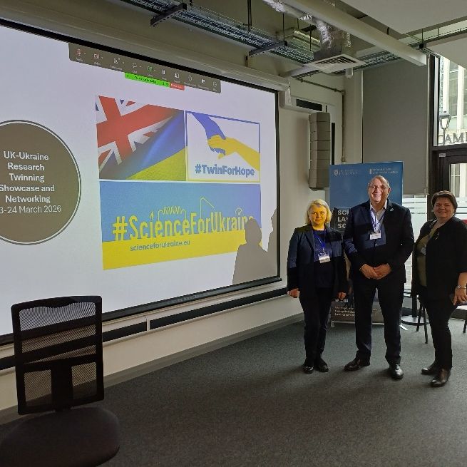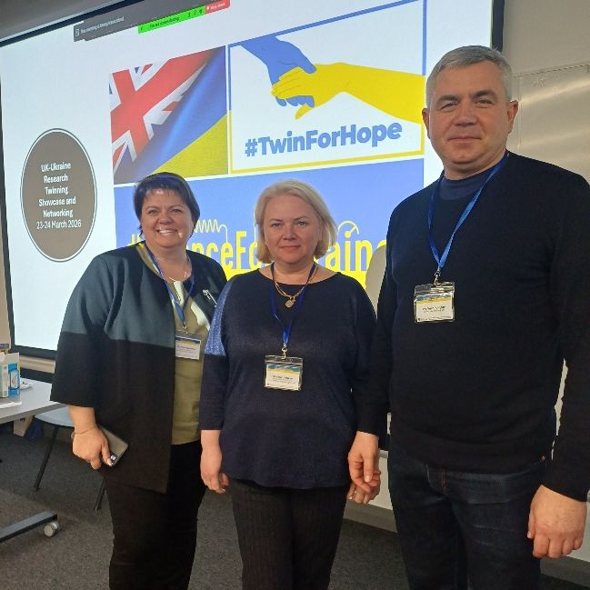 Проректор із наукової роботи Олена СТЕПОВА та декан факультету філології, психології та педагогіки Анна АГЕЙЧЕВА відвідали міжнародний захід UK–Ukraine Research Twinning Showcase 2026 у Великобританії в межах програми Twinning, що спрямована на розвиток міжнародних науково-освітніх проєктів та зміцнення партнерських зв’язків на глобальному рівні.