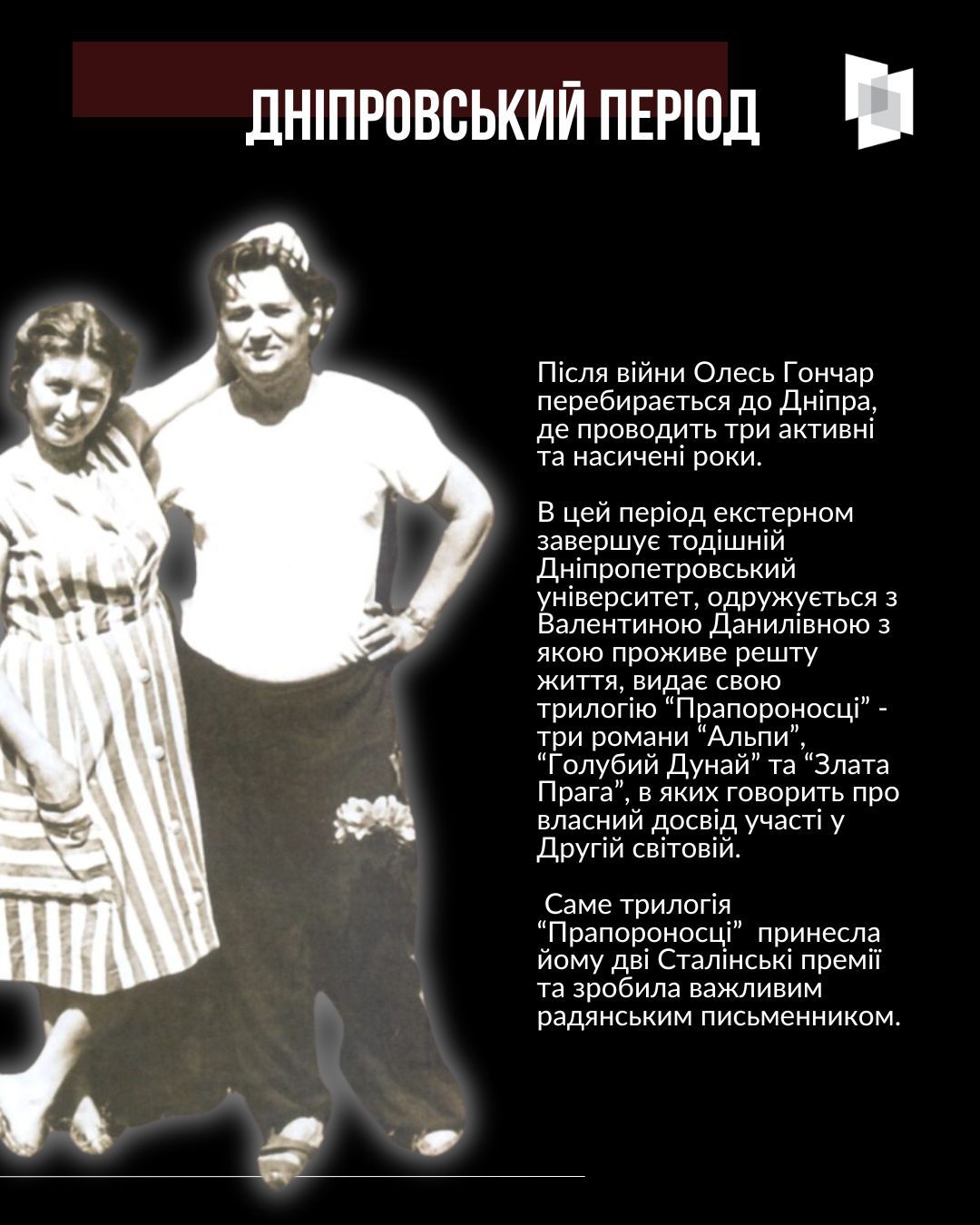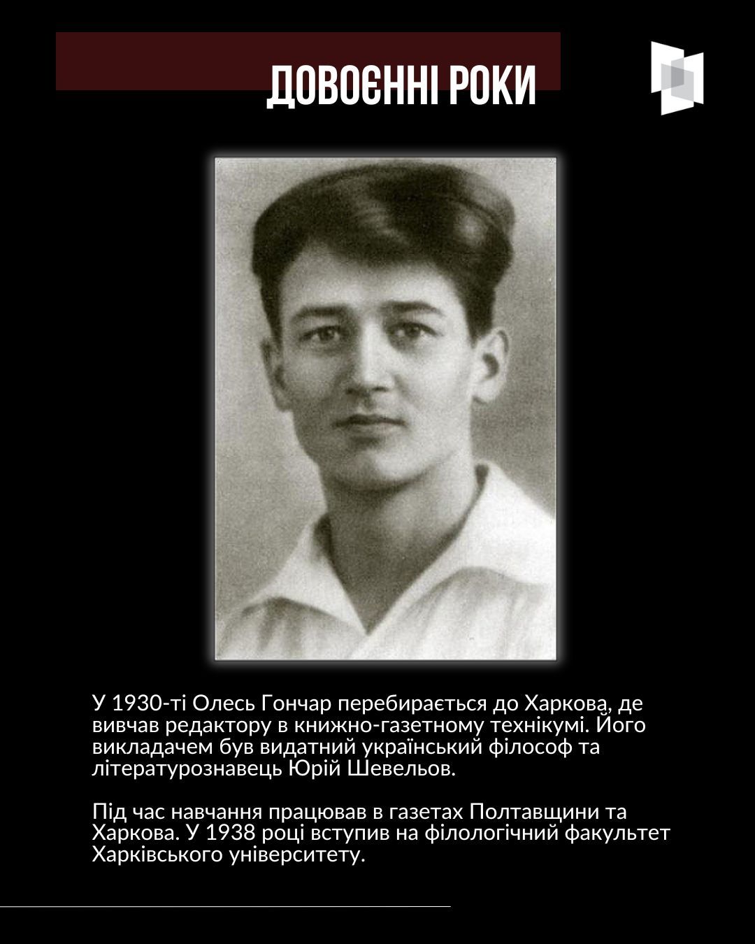 3 квітня минуло 108 років від дня народження українського письменника та державного і громадського діяча Олеся Гончара. Про життєвий та творчий шлях літератора Український інститут національної пам’яті створив просвітницький слайдер.