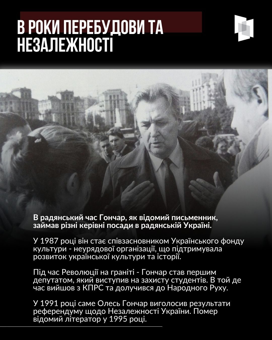УІНП створив просвітницький слайдер про Олеся Гончара
