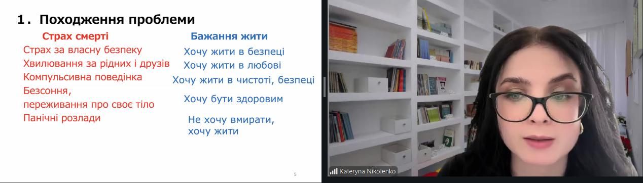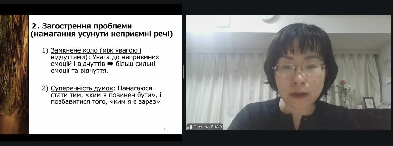 Темою підсумкового тренінгу стала рефлексія щодо використання Моріта терапії під час війни й обмін психологічними практиками. Японська психологиня Danning Zhao представила ефективні підходи Моріта терапії, традиційної японської психотерапії, що виявилися корисними в кризових ситуаціях. Особливу увагу вона приділила застосуванню конструктивних дій, організації способу життя, навикам справлятися з неоднозначними втратами, виявленню співчуття до себе, збереженню енергії під час війни та ін.