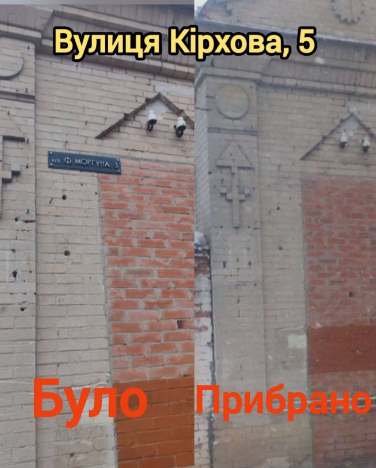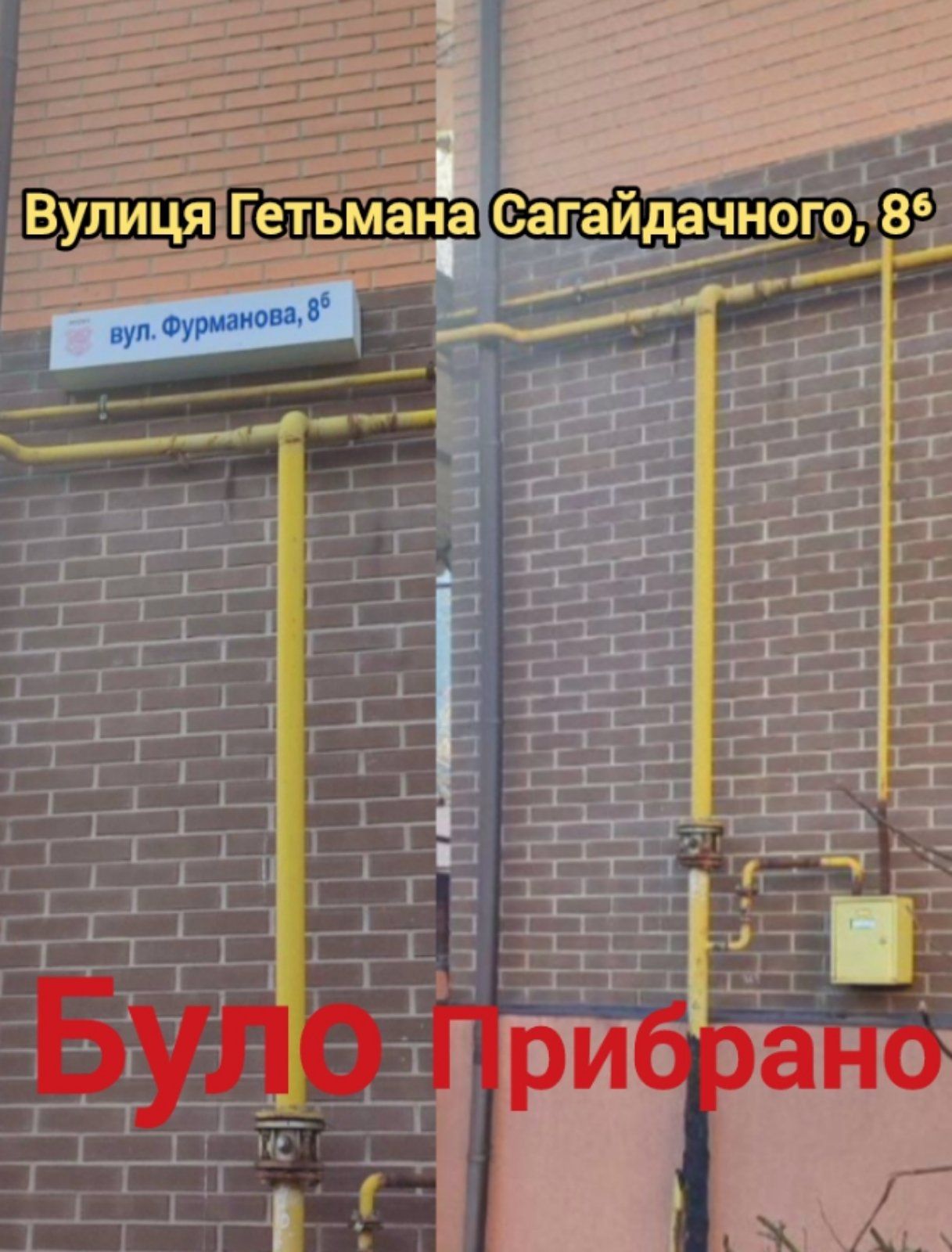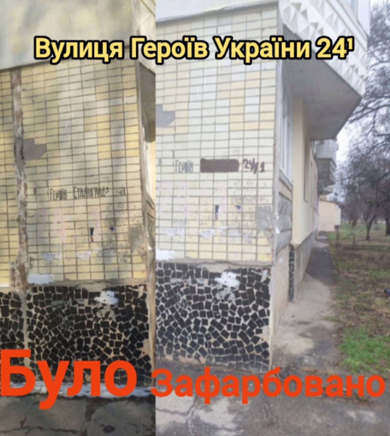 Будинки №8/1, №14, №19/2, по проспекту Віталія Грицаєнка очищено від написів-покажчиків «Першотравневий» (на світлинах).