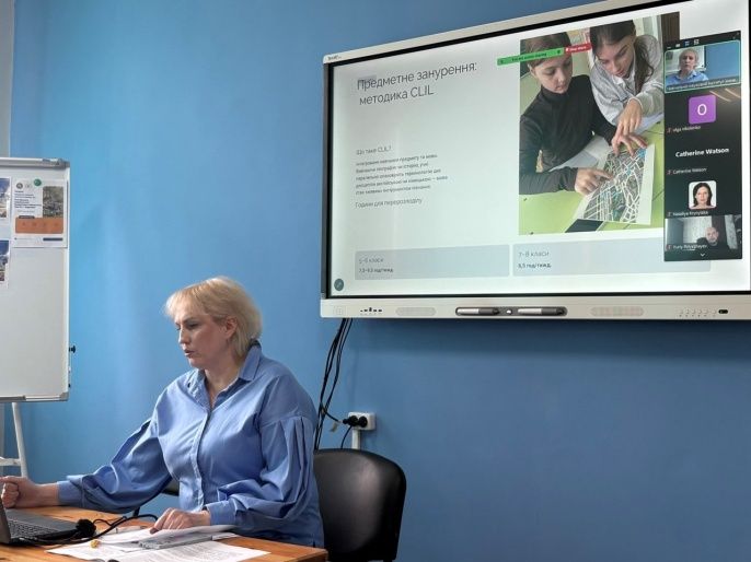 У своєму виступі доцент Юрій Полєжаєв (Запоріжжя) розкрив можливості CLIL-практик у системі підготовки учнів до НМТ з англійської мови.