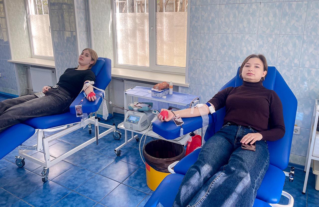 Забір крові здійснювався у мобільному пункті, розгорнутому у дворику університету, а також у Полтавській обласній станції переливання крові.